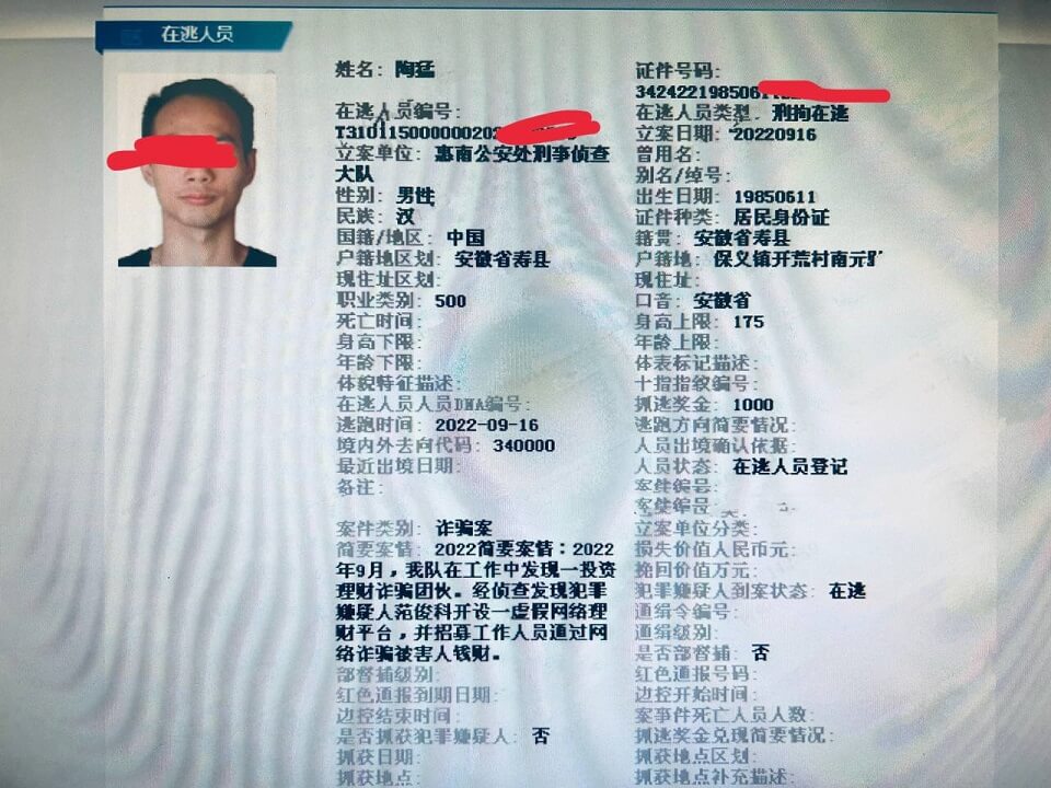 在逃犯罪人员查询